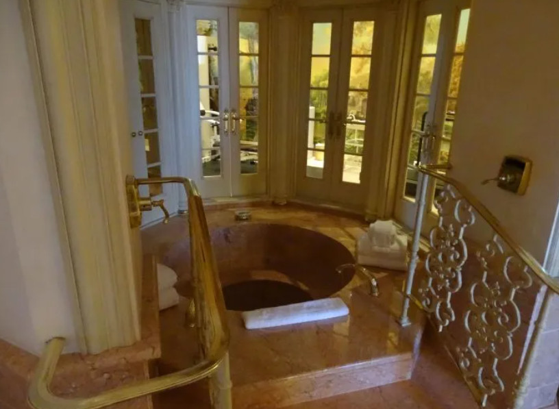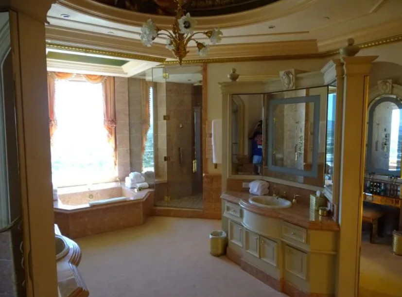 The two-story Versailles Suite has three bedrooms that can be accessed by a spiral staircase that rises 30 feet .or a dedicated elevator that is hidden behind an inconspicuous door.