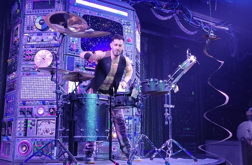 Two additional acts feature entertainers with Cirque du Soleil backgrounds. Wayne Skivington defies gravity in a hand-balancing routine with longtime ZUMANITY partner Kat Bazar-ova, now through the end of December. They'll then move over to sister production ABSINTHE. https://vimeo.com/776437081 Former ZUMANITY performer Steve Weiss served as musical director for RATED RED (my choice for "Best New Show of 2021"). He and fellow percussionists Micah Clark and Khalid Freeman have joined forces as "The Big Bang-ers". Weiss told me that he's quite excited to be a part of the OPM team:"I am happy getting to do something I love. There aren’t many people doing body percussion 10x a week anywhere in the world so I consider myself lucky and it’s a big responsibility to represent the art form."
