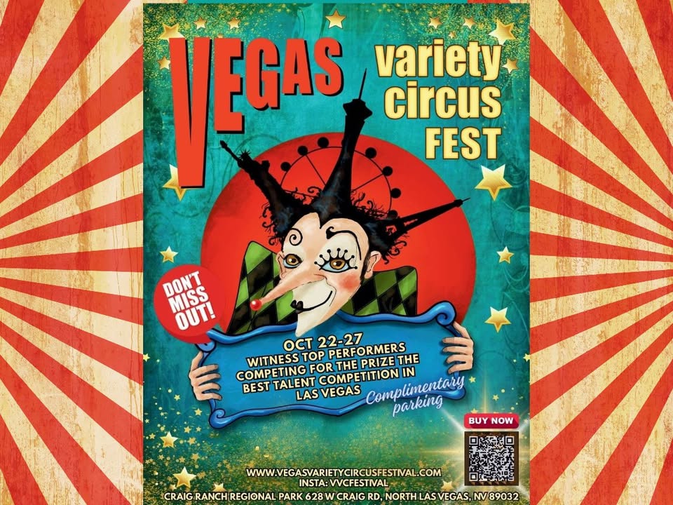 VEGAS VARIETY CIRCUS FESTIVAL opens Wednesday, October 22nd at 7 pm. Nightly 7 pm shows on Thursday and Friday expand to 1 pm, 4 pm, and 7 pm on Saturday. Sunday's line-up takes place at noon, 3 pm, and 6 pm, with the Grand Finale on Monday, the 27th, at 6:30 pm.
