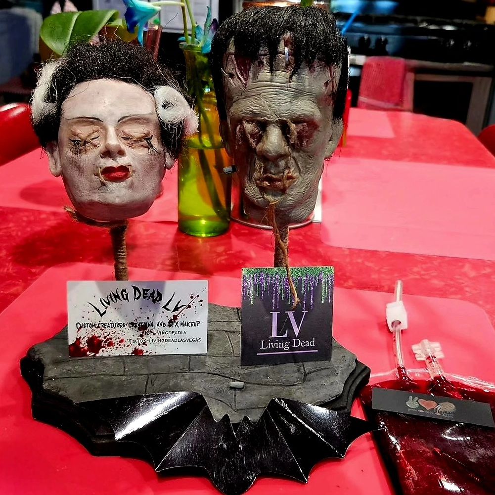 LIVING DEAD LAS VEGAS is a business and studio dedicated to artistry of a most gruesome kind. Expanding on its origin in special effects (SFX) makeup and related prosthetics, Living Dead LV makes its talents available to consumers who lean toward the macabre. [video width="1920" height="1080" mp4="https://vegas411-images.s3.eu-north-1.amazonaws.com/wp-content/uploads/2023/10/10014025/20231002_222910.mp4"][/video] After the presentation of Shaw's unique likeness, Harley agreed to do an online interview with VEGAS 411 about their background...and how LIVING DEAD LV went from an idea to a cool, nightmarish reality: "Ian was in the Army for twelve years, and I was a performer and makeup artist everywhere we were stationed. After a trip to Tom Devlin Monster Museum while still in the Army. he decided that's what he was going to do. We moved here to Vegas, and a year later he attended L Make Up Institute for beauty, body painting, and SFX (special effects)."