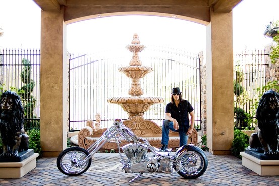 Criss Angel with one of his many custom motorcycles at Serenity mansion