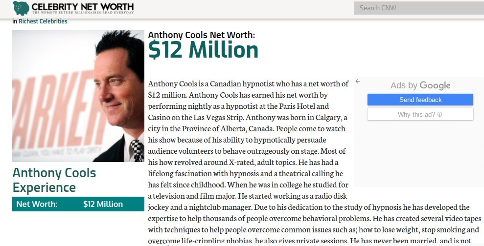 Do you recall earlier this spring when Caesars Entertainment permanently shuttered a dozen or so productions and showrooms? Hypnotist Anthony Cools and his self-titled theater at Paris Hotel were on the receiving end of that boot. But their ejection was presumably after Cools received a government assistance check for $208,638.61, specifically intended to keep the show and venue alive until after the pandemic. As seen above, Anthony Cools has an estimated net worth of $12 million.