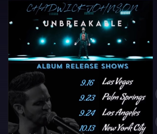 If you haven't seen a Chadwick Johnson concert, or you'd like to experience one for the first time, he'll be promoting UNBREAKABLE with a series of live performances. The first takes place in Las Vegas at THE SPACE on September 16th, the very day of the album's debut.