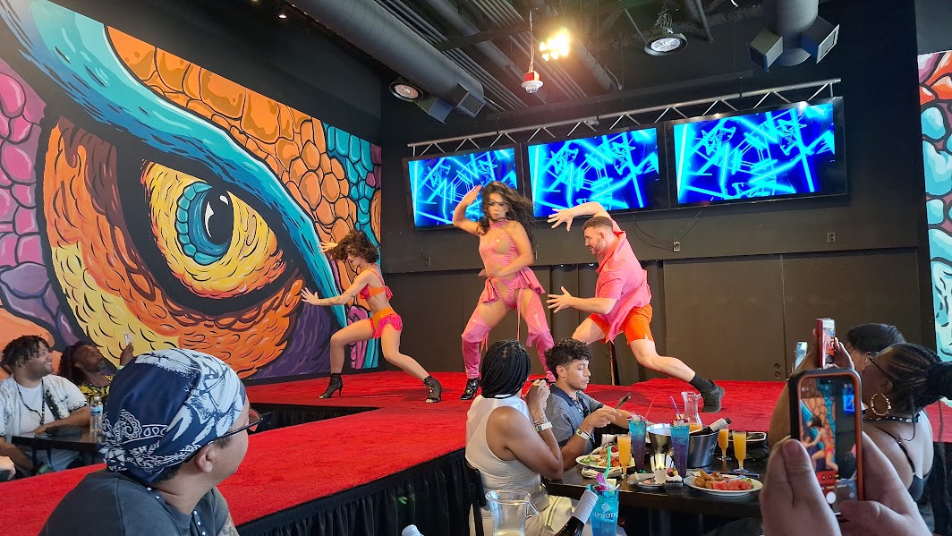 Now here's one of the things that separates VIVA from similar brunch shows. Even if drag isn't your thing, the scorching dancers ensure that you'll have a great time. They're sexy, extremely talented, and bursting with energy. Jesus and KC have assembled a collection of trained artists that includes Warren Vanover (MJ Live), Talia Rose (ROUGE), Ryan Trotman (Mayfair Supper Club), and Jenna Obman (EXXCITE).