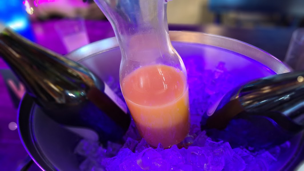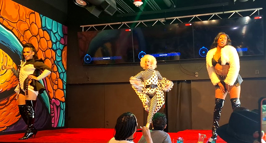 When you return to your table, bottomless mimosas await. You can also order from a list of traditional beverages, specialty cocktails, wine, and spirits. Then settle in and get ready to blast into the universe of drag entertainment.