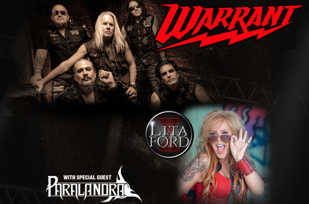 Glam metal and rock history collide when WARRANT teams up with guitarist Lita Ford for an unforgettable night of music. A chart-topper with songs reaching back to 1975, Lita Ford still records and releases new albums. WARRANT released five top-selling albums between '89 and '96. They're best known for "Cherry Pie", the anthem for strippers throughout Las Vegas.