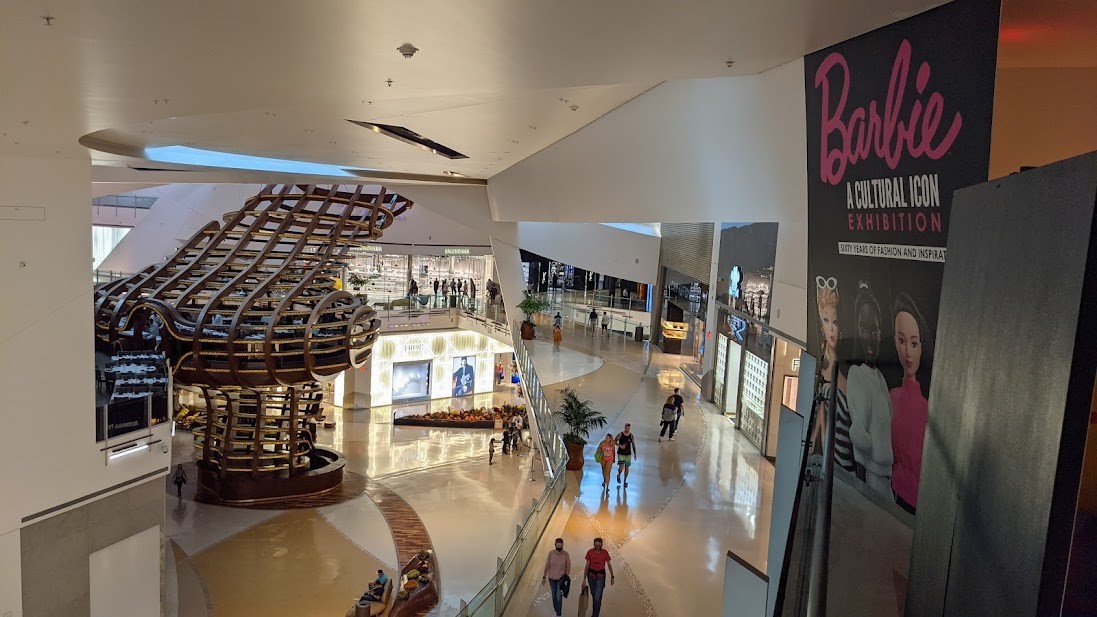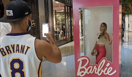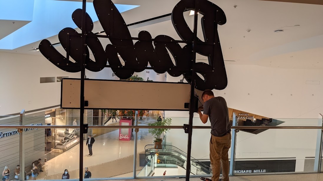 VEGAS 411 visited the site on Thursday as last-minute preparations were underway. Shoppers gazed, fascinated, while technicians powered up the attraction's sign, infusing it with Barbie's familiar pink glow. One level below, Instagram fashionistas posed inside a life-size Barbie box while others asked "When does it open?". "How do I get up there?"