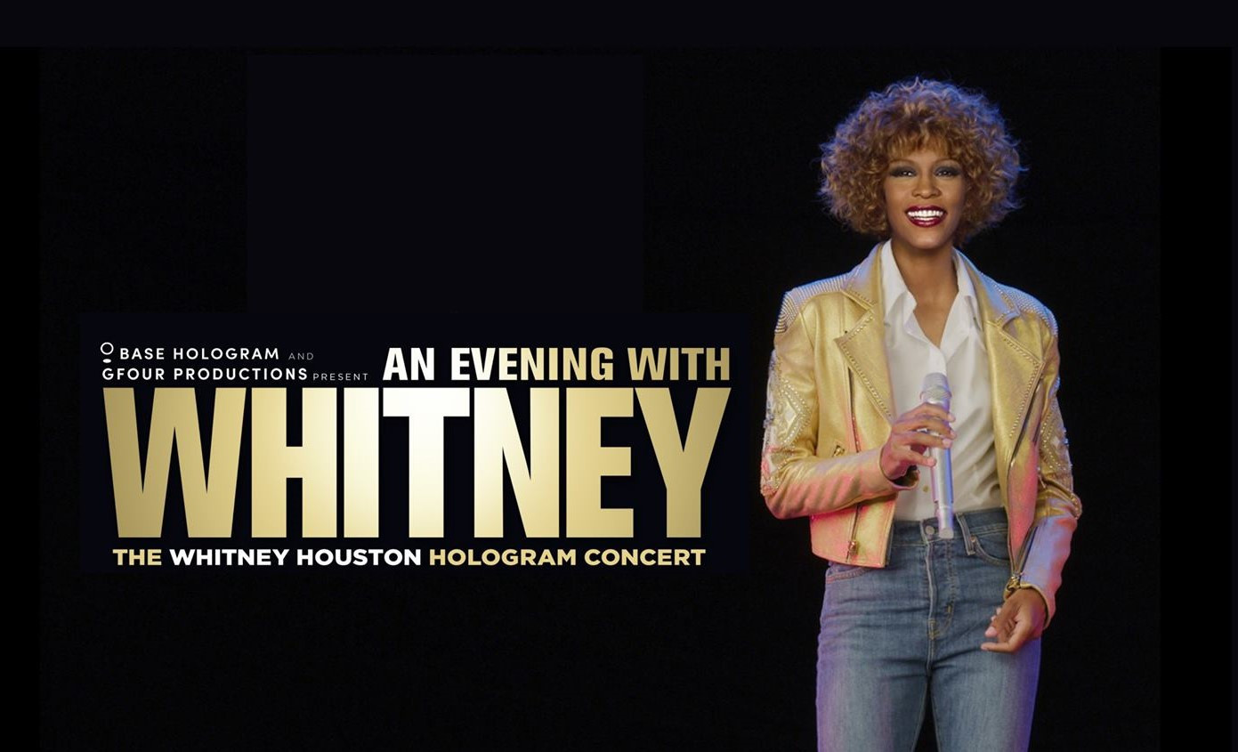 AN EVENING WITH WHITNEY - THE HOLOGRAM CONCERT is a full-scale production playing at Harrah's main showroom. Despite its name, the representation of Ms. Houston is not an actual hologram.  A true hologram is a 360-degree virtual object that you can walk around and observe from any angle. AN EVENING WITH WHITNEY utilizes an intricate combination of computer-generated imagery, motion-capture performances of a stand-in, and carefully-mapped video projections. The effect is somewhat surreal, a little disconcerting, yet ultimately easy to adjust to. Still, you couldn't walk around this "performer"...she's just not there.