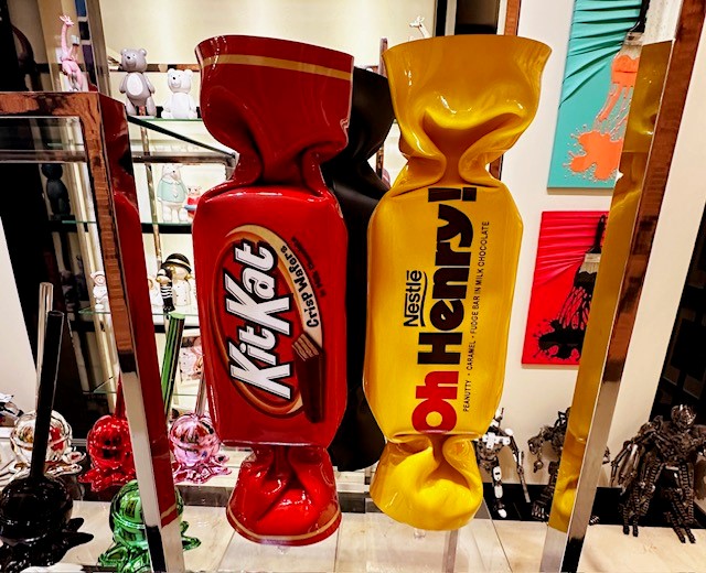 Prepare to be dazzled by all the upbeat, brightly colored art for sale at this gallery helmed by Bulatova, an artist with Russian origins who’s known for her “Sweet Life” lollipop and popsicle sculptures. Bulatova also showcases the work of other artists, including David Mir, whose resin-and-acrylic tributes to Kit Kat and O’Henry’s candy bars are pop culture wonders.