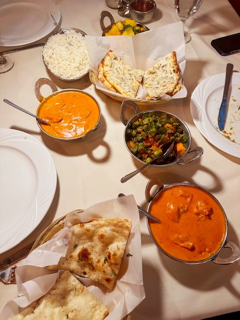 All my favorites, including the okra, cauliflower/potatoes, garlic nan, potato-filled nan, and samosas, tasted strikingly light, and the chicken tikka masala was as creamy/dreamy as it needed to be. While you dine, it’s hard not to look up at the TV screen on the wall playing Bollywood films with colorfully costumed Indian actors dancing to pop-dance music. This keeps the mood at Angara lively and fun.