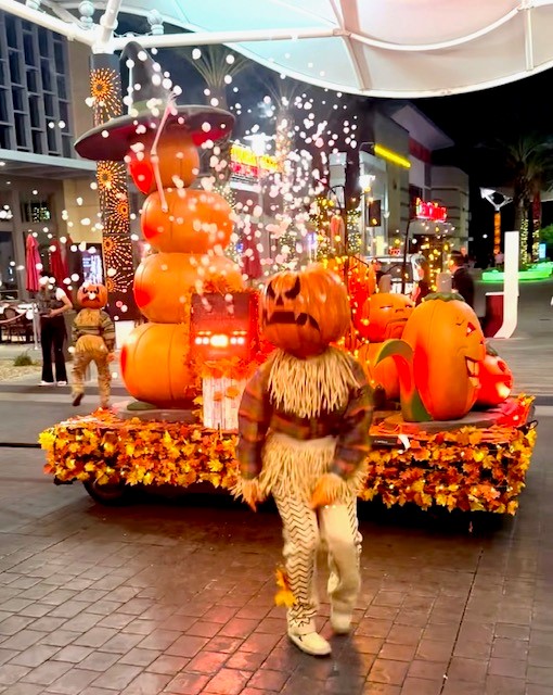Walking around after dinner, I happened upon the dress rehearsal for the annual “Parade of Mischief.” The family-friendly Halloween season parade with creative floats runs through downtown Summerlin’s streets every Friday and Saturday at 6 pm through October 26.