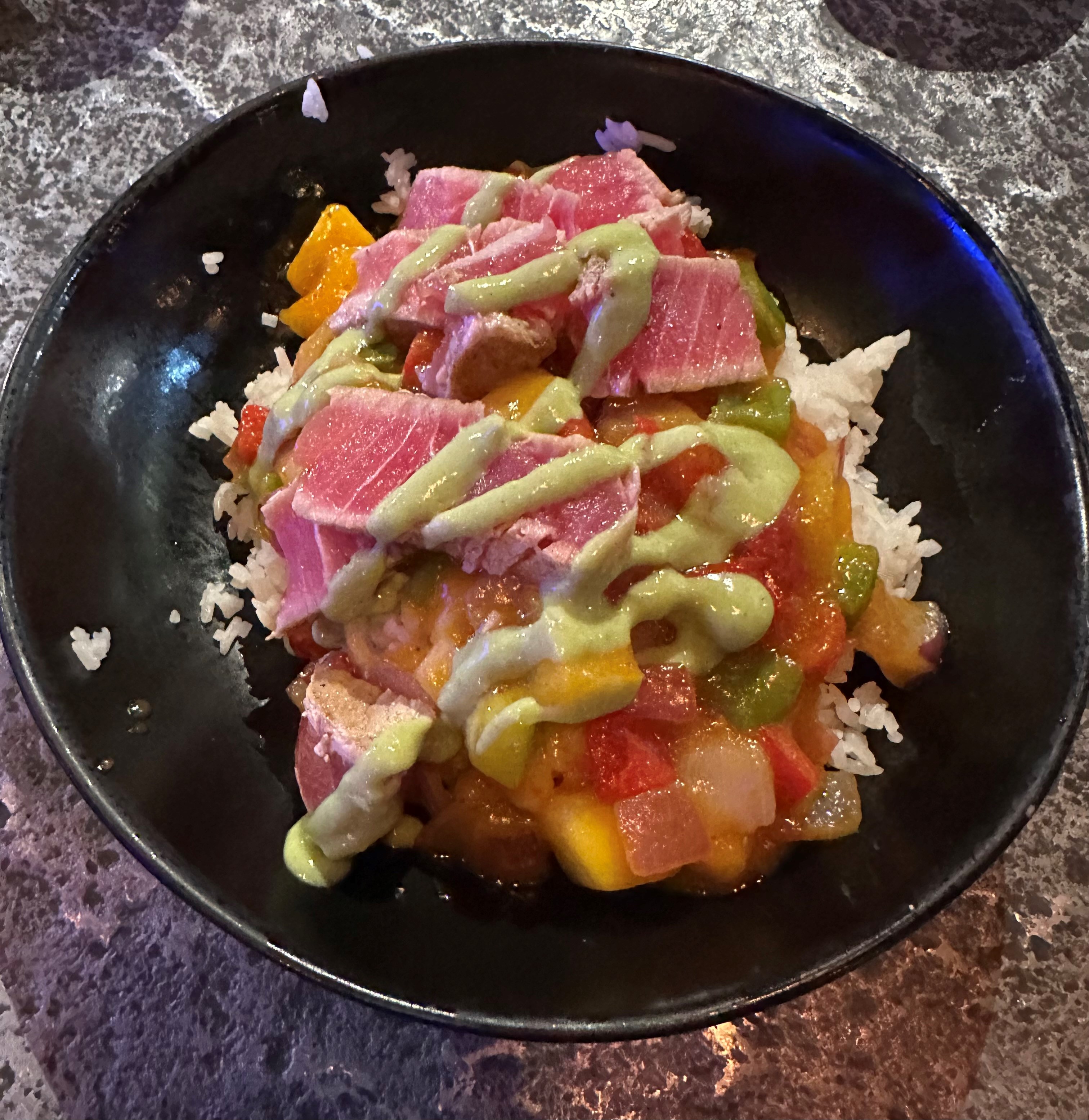 I took the healthy route and ordered the Mangolorian with seared ahi tuna, jasmine rice, Hawaiian mix, mango basil, and cilantro. This excellent union of flavors was affordably priced at $15—a perfect dish I ate on the eatery’s outdoor patio in downtown Summerlin on a glorious night in the mid-‘80s with only 16 percent humidity and no insects in sight (my idea of paradise).