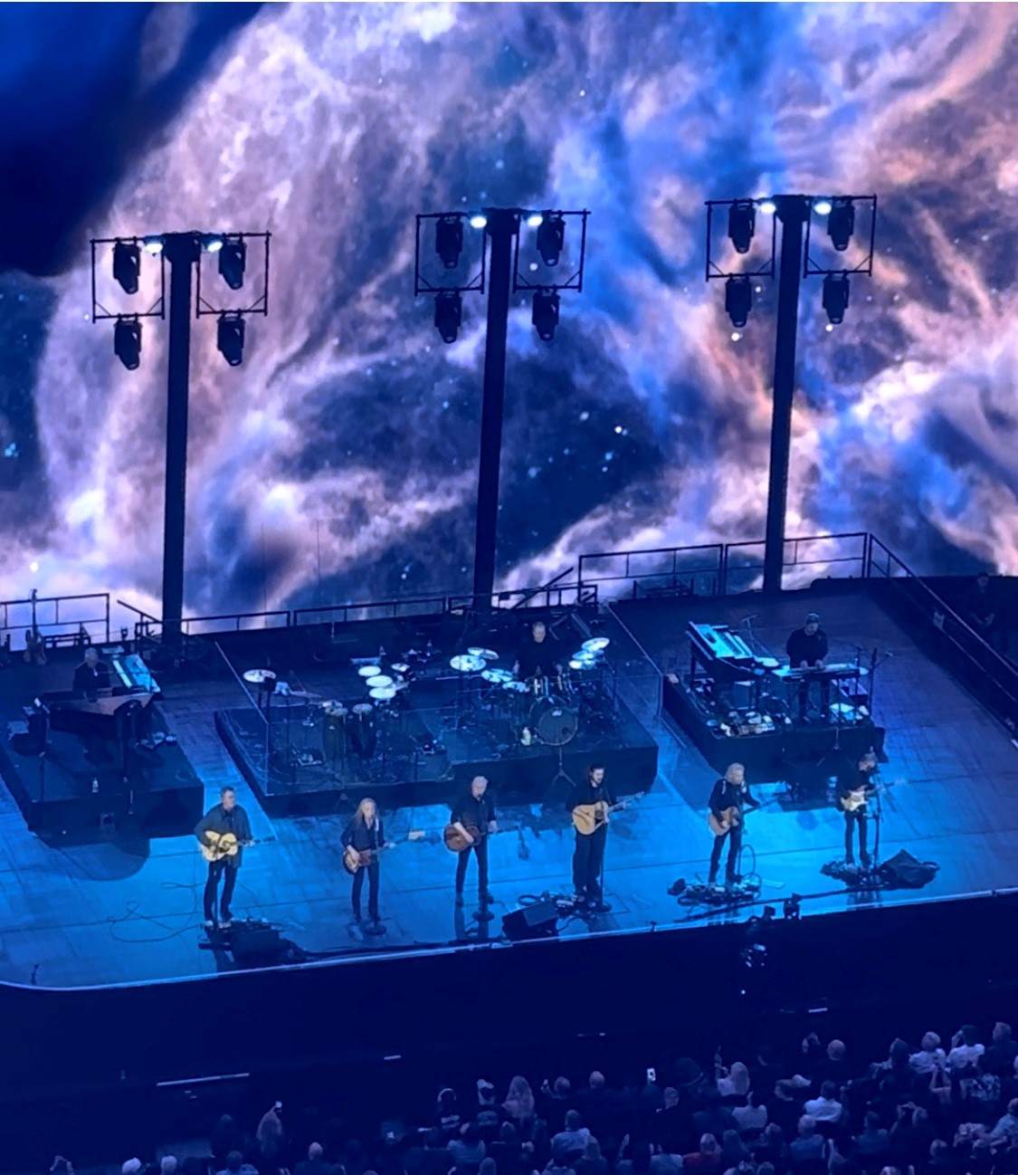 Walking into the Sphere, I couldn’t help but wonder if the Eagles would meet the challenge of performing in a venue that’s driven by startling visuals without sacrificing the intimacy of most of their songs. Glad to say the Southern California band triumphantly pulled it off, utilizing creative imagery as well as projections of themselves to enhance, not overwhelm, the songs.
