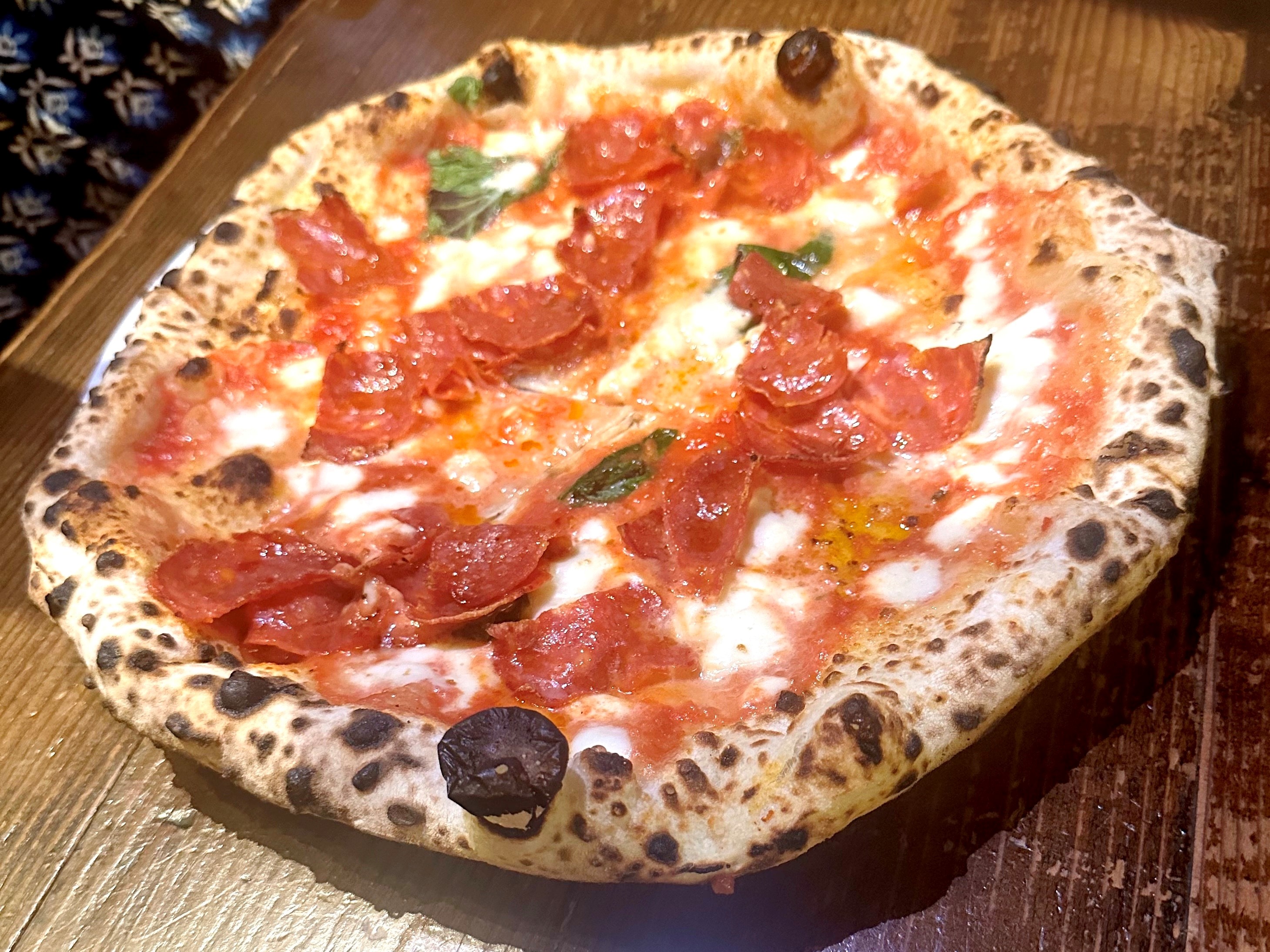 That’s when the Italian restaurant offers an outstanding margherita pizza with one topping for only—drumroll, please—$8.00. It’s an extraordinary deal, probably one of the best nighttime discounts in the city, since the pizza (with crushed tomatoes, mozzarella, parmigiano, basil, and oil) is regularly priced at $17.00. I chose the outstanding pepperoni topping.