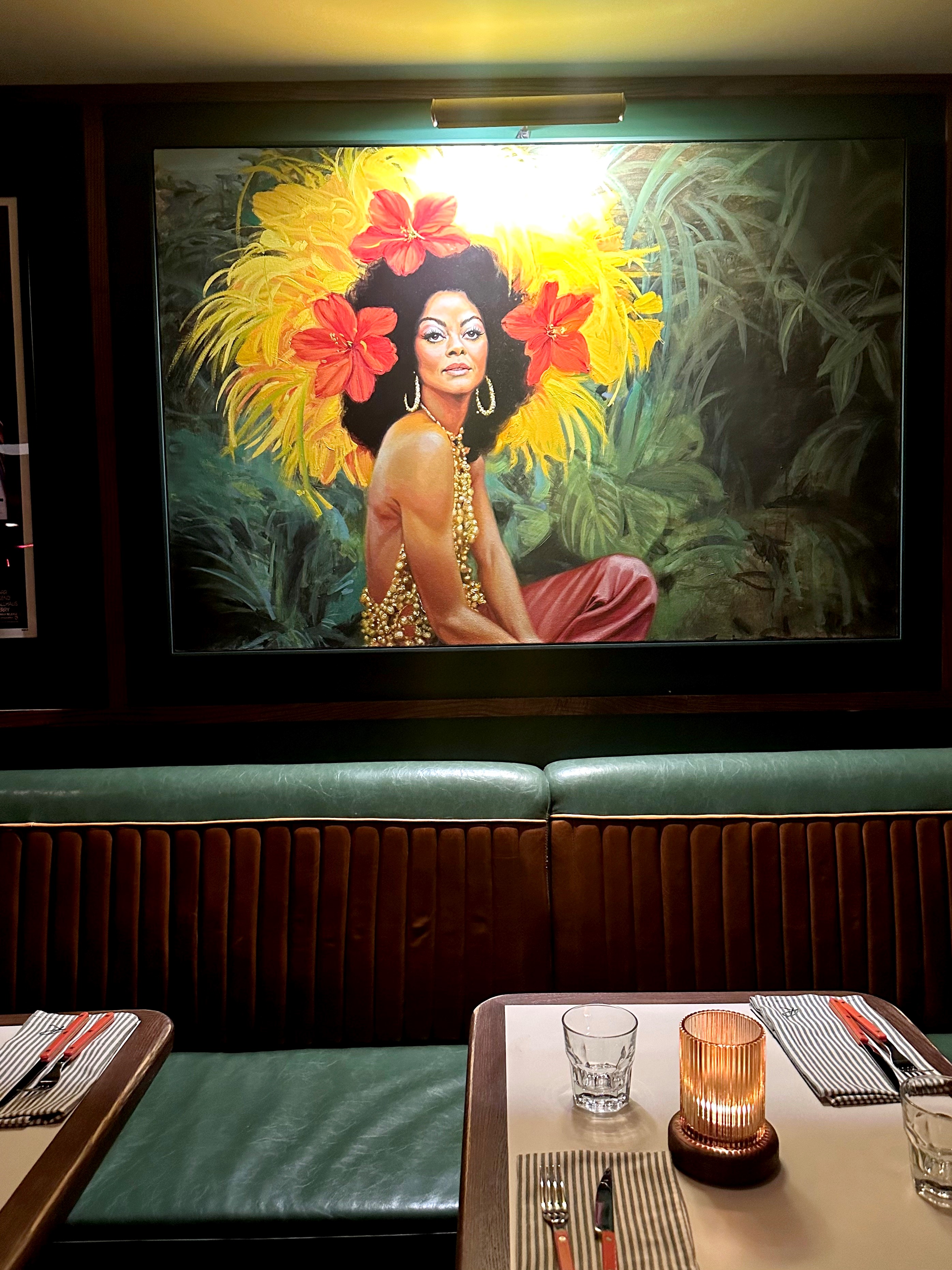 On the wall, there’s ‘70s memorabilia, like a big painting of Diana Ross (whose namesake inspired the restaurant’s name), a “Serpico”/Al Pacino film poster, and a framed glossy B&W photo of the New York Dolls.