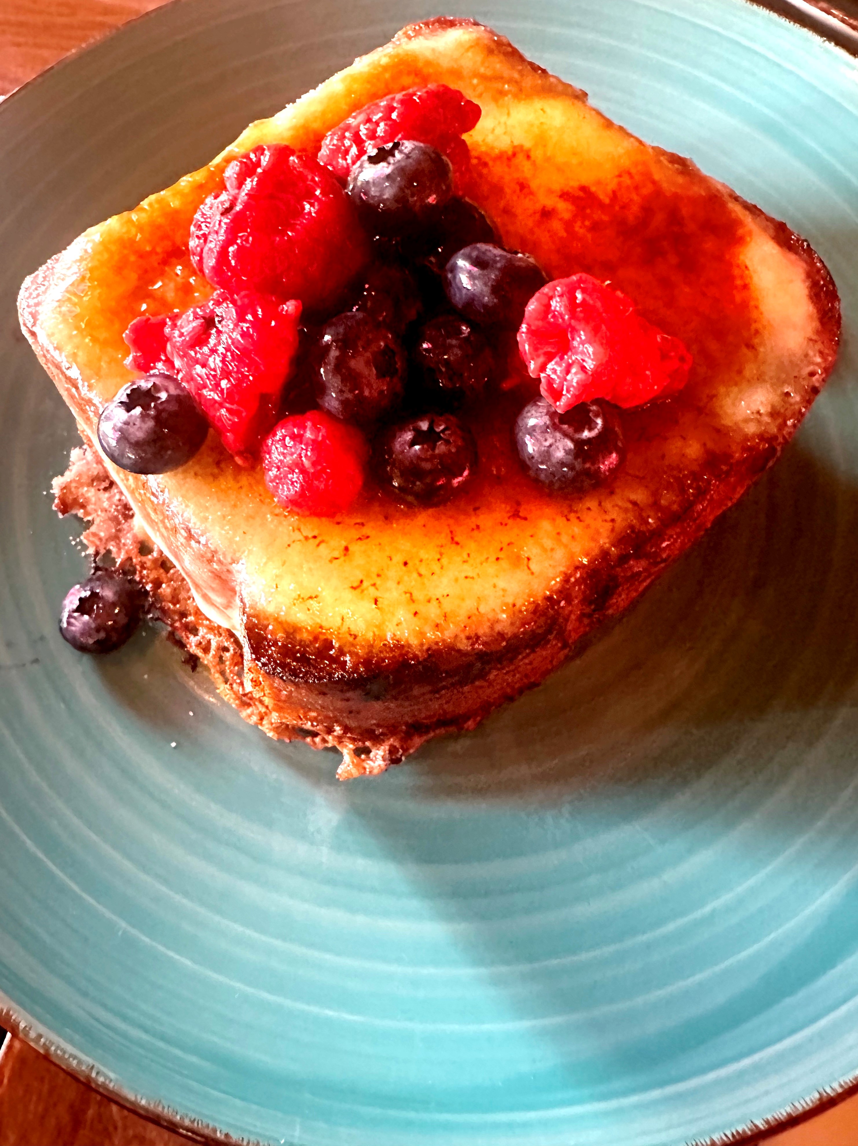 As a native Bronx boy, I immediately (and wisely, it turns out) went for the “New Yorker” on the Kaiser roll, with eggs over easy, American cheese, grilled ham, and a spicy Italian chili sauce. I’m also heartily recommending the immediately mood-lifting tiramisu coffee with cookie syrup, double espresso, mascarpone, and whipped cream. We all shared the Crème Brule French Toast, a dreamy offering with caramelized sugar and topped with fresh fruit. If everyone tasted this, it could likely bring about world peace.