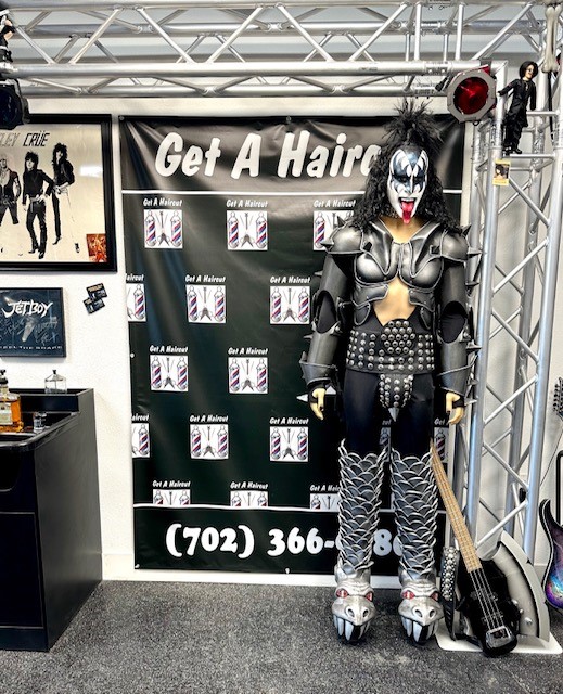 Notably, the eye-catching Get A Haircut doubles as a rock & roll museum. It’s stuffed with all kinds of memorabilia: stage wear by the artists who wore them, like Stephen Pearcy of Ratt; various instruments, including a guitar signed by Motley Crue’s new guitarist John 5; and concert posters and live photos, including some taken by Vegas-based David Plastik.