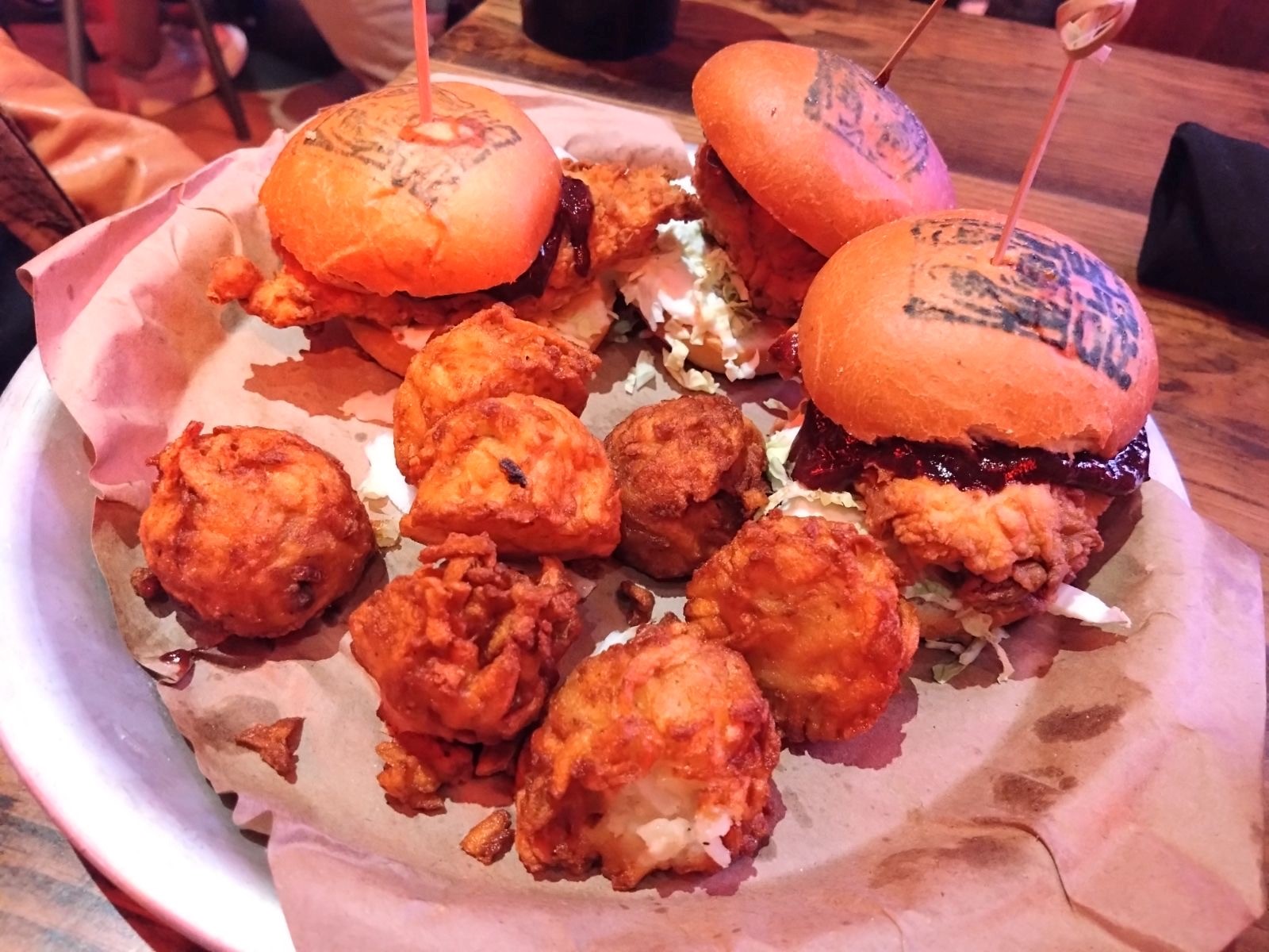I didn’t know that the “Blackberry Crispy Chicken Sliders” on brioche buns I ordered at Ole Red Las Vegas on the Strip was the treat my palate needed. The buttermilk fried chicken sliders are served with blackberry compote, jalapeño whipped goat cheese, and Napa cabbage—a creative and tasty combination. Might I add that the accompanying tater tots were the biggest ones I’ve ever seen?
