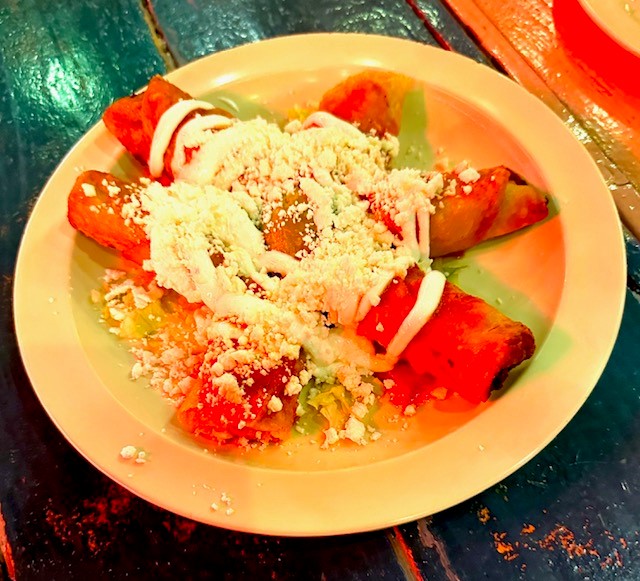 Feeling vegetarian, I couldn’t resist the potato and manchego cheese-filled flautas, plus the sopes with pinto beans. Each offering was a delicious, soulful, and fresh celebration of Mexican food. The ambiance at the eatery and bar (marking its ninth anniversary this year) is fun and colorful, with carefree Day of the Dead dancers painted on the walls.