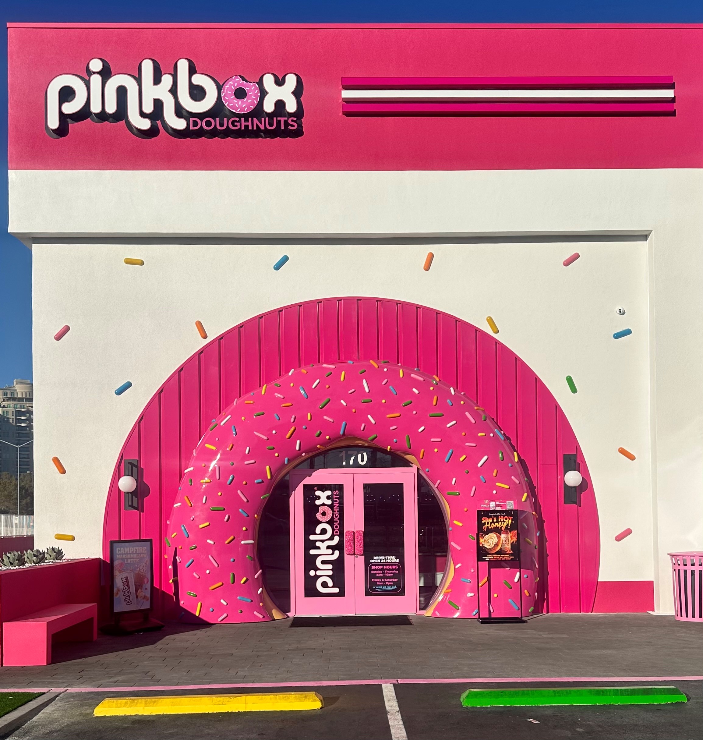 As an admirer of architectural whimsy and all things kitschy, I’m pleased to welcome the new and 14th location of Pinkbox Doughnuts—the Vegas-born doughnut brand—to my neighborhood in the Summerlin area.