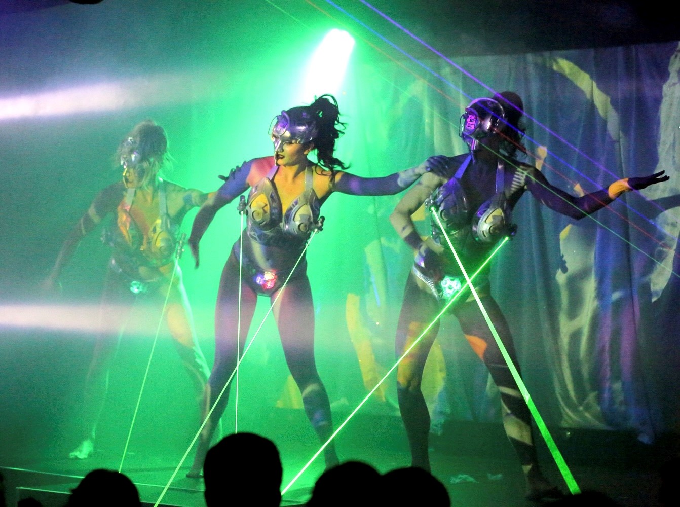 The five “X ROCKS” dancers bring theatrical sizzle to their seductive moves. The show is fresh, engaging, and fast-moving, with lots of costume changes and lighting effects. It’s loudly soundtracked to a non-stop mix of snippets of songs from artists like T. Rex, AC/DC, and Slash with Myles Kennedy & The Conspirators—which features guitarist Frank Sedoris, son of Angela and owner of the Hard Hat Lounge on Industrial Rd.