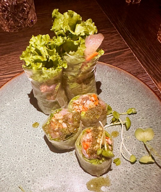 From its expertly conceived dishes to the seductive design and moody lighting where everyone looks like they’re “worth a million in prizes” (to quote a lyric from Iggy Pop’s “Lust For Life”), this is a must-visit spot. There are so many you-can’t-go-wrong choices here, like the Loui Suan starter, which is sautéed ground pork, green leaf, and Thai herbs wrapped in fresh rice paper. It’s light, a little crunchy, and transcendent.