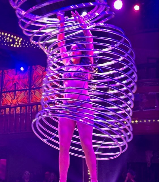 Every character in the revue, including the preacher, is going to hell, and the perfectly chosen music—with such songs as Big & Rich’s “Save A Horse (Ride A Cowboy),” Britney’s “Work Bitch,” and Jace Everett’s “Bad Things”—amps up the proceedings. “Atomic Saloon” has a lot going for it: campy flair, non-stop energy, hoop dancing, hand balancers, dazzling choreography from the entire cast, and more. Long may it run.