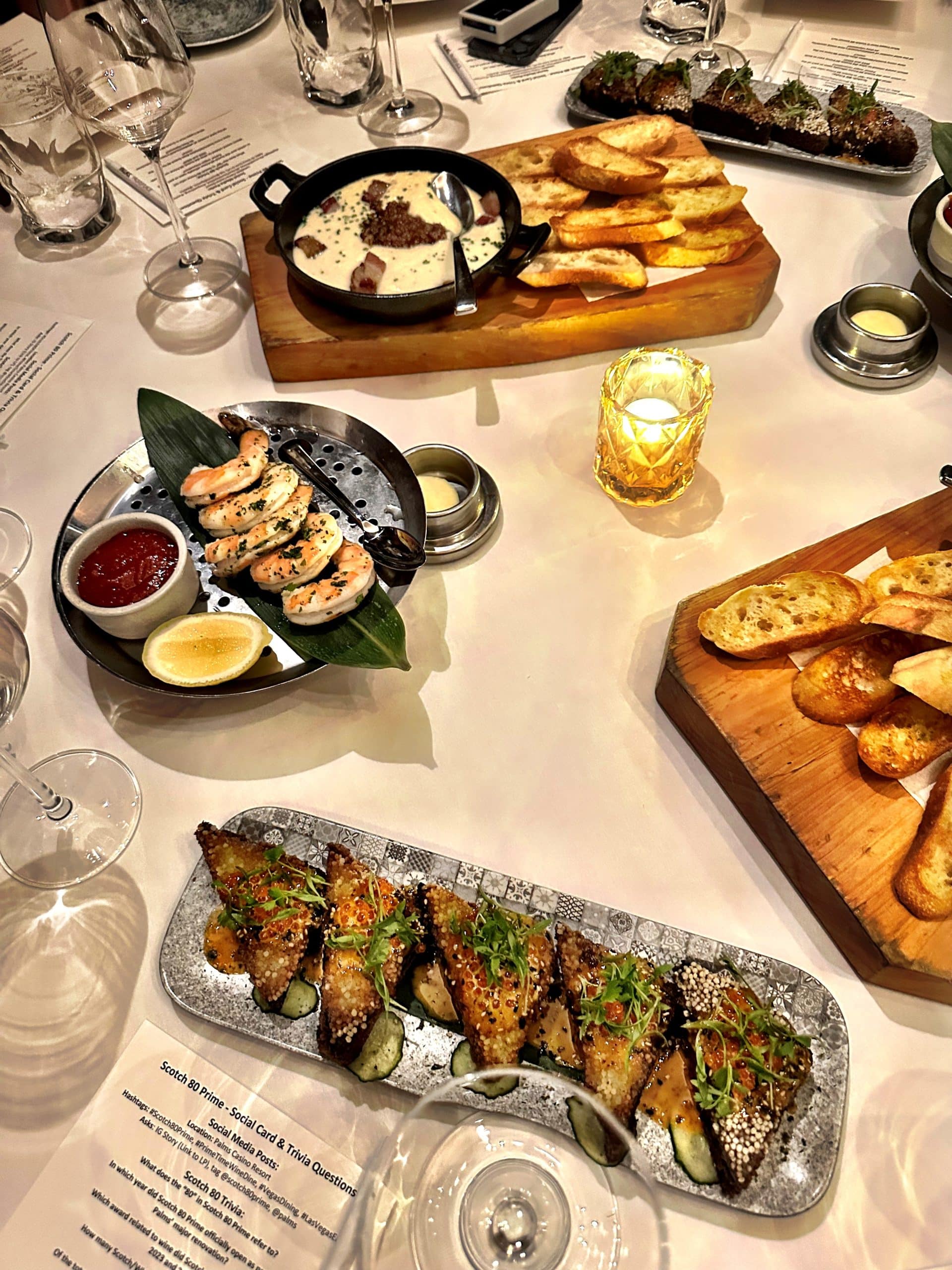 Steakhouses are never cheap of course but this one has an appealing work-around for budget-minded diners. Try their “Social Hour,” Monday-Thursday between 5-7pm. That’s when select raw bar items, appetizers including the “Shrimp Toast,” salads, and main plates—like the heavenly filet mignon that was served at the private dinner—are notably 30% off (the same goes for cocktails, beer, and wine). All the prime-cut steaks are grilled over mesquite charcoal with fruit woods—and finished (thank you) with garlic herb butter. I’m ready to move in here.