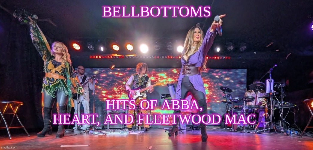 “BELLBOTTOMS brings together the best of Fleetwood Mac, Heart, ABBA, and other legendary artists for an unforgettable night of live music, retro fashion, and disco-era fun. From soaring rock anthems to infectious dance hits, BELLBOTTOMS delivers spot-on renditions of the songs that defined a generation. Some of Vegas’s most talented musicians and singers capture the spirit of the decade when sequins and disco balls ruled the stage.”