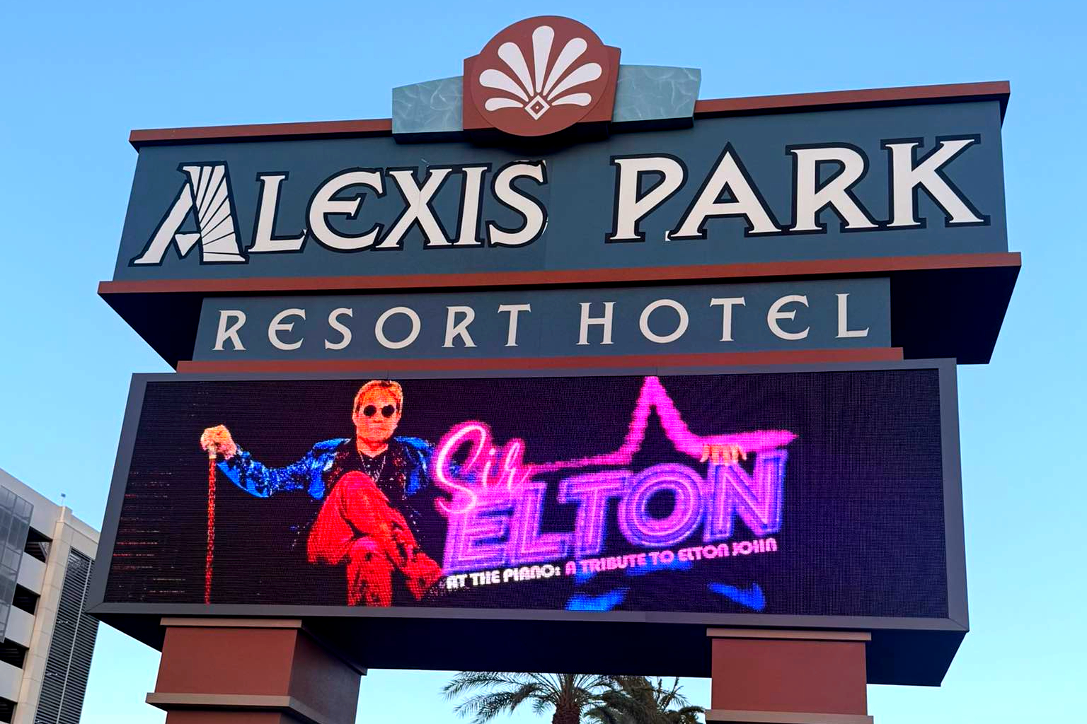 After a brief summer run at Ahern Boutique Hotel, SIR ELTON – AT THE PIANO moves into a permanent time slot at Alexis Park Resort (yes, them again) this month. The 70-minute show will play Mondays and Tuesdays at 7:30 pm. Featured star Jeff Burkett announced the news via his social media on October 4th: