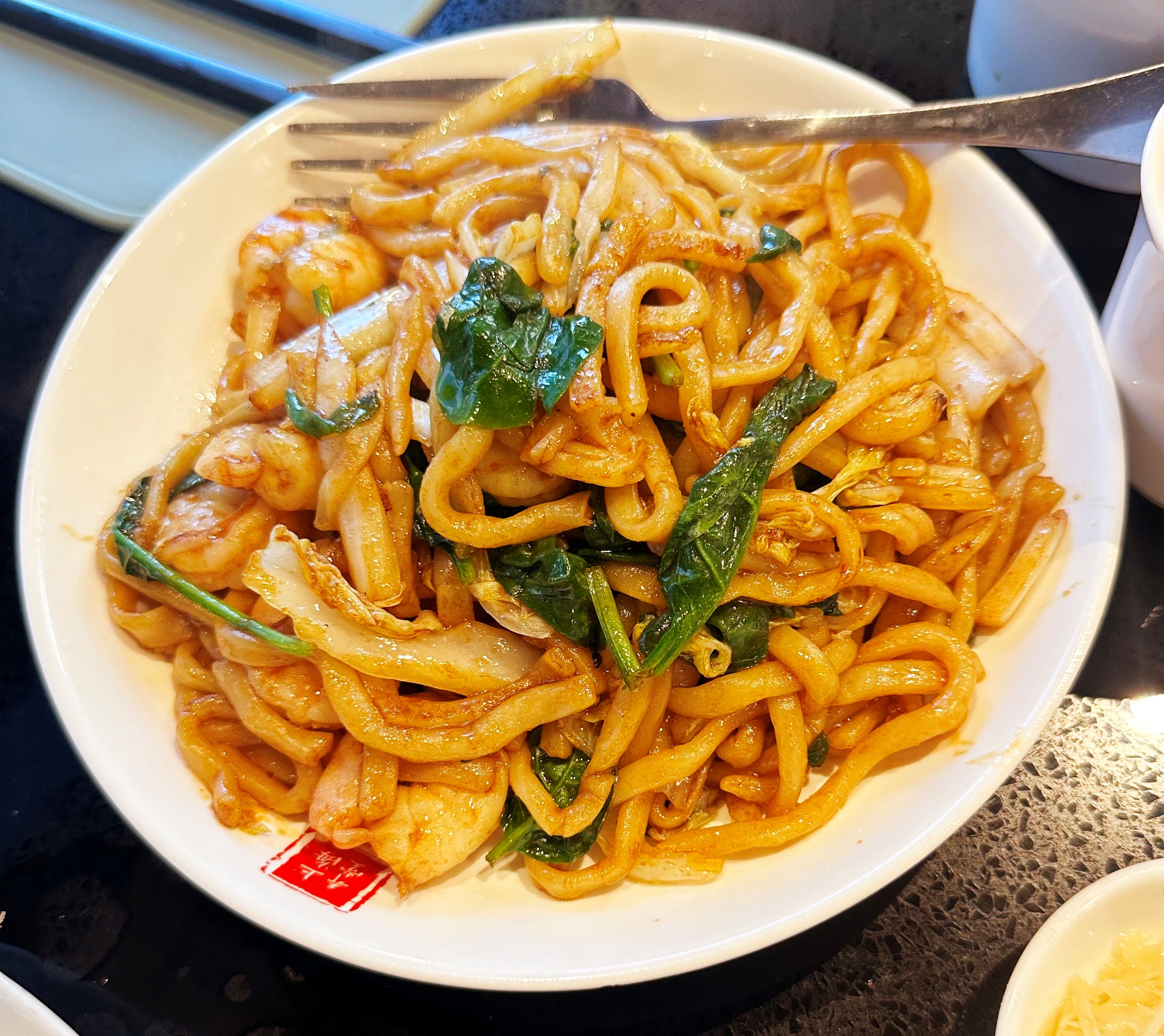 The ShangHai Fat Noodle with Shrimp is absolutely yours for the taking. (Image: Vegas 411)