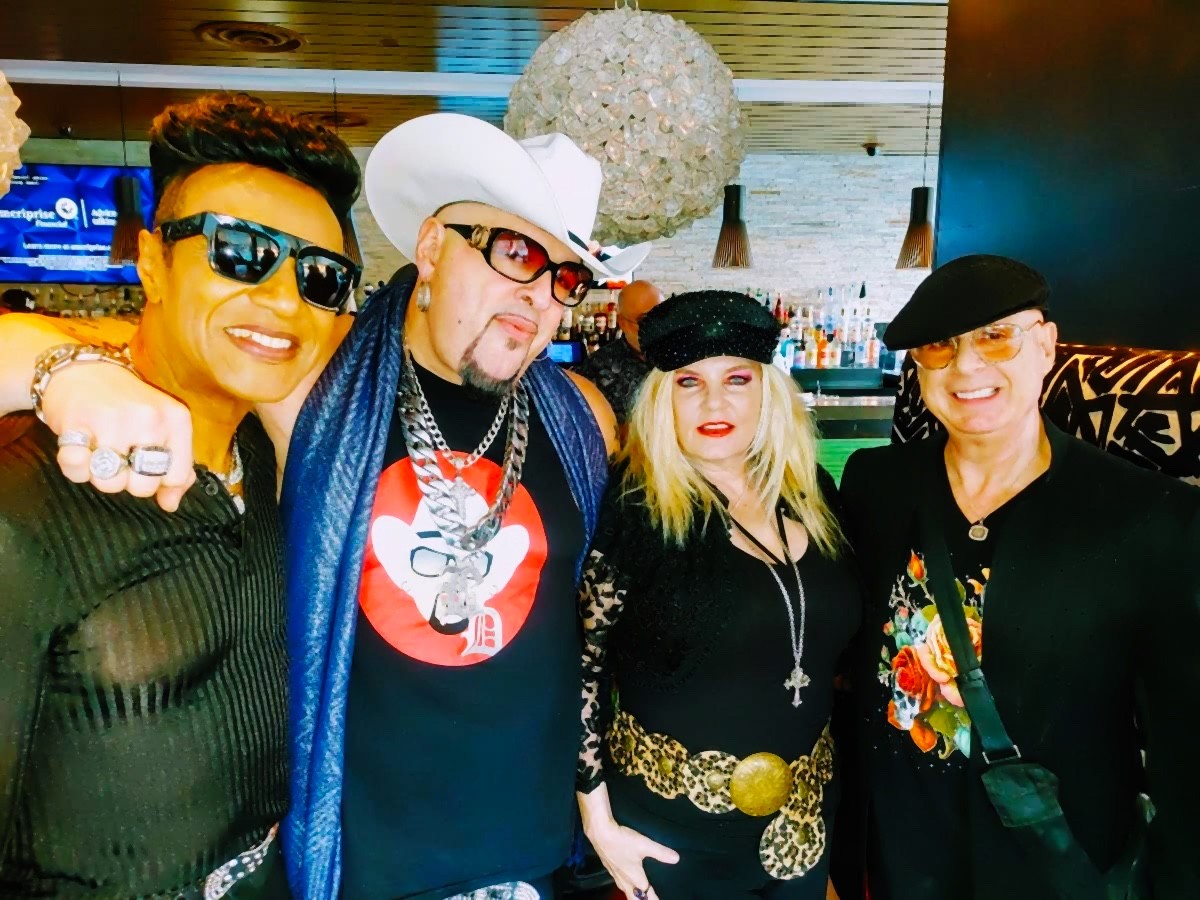 Nothing but a good time. L-R: Singer Bobby Wilson (son of legendary soul vocalist Jackie Wilson), Carlos (“Big Daddy”) Adley, Sally Steele, and Mitch Schneider (Vegas 411). (Image: Jerry Watson)