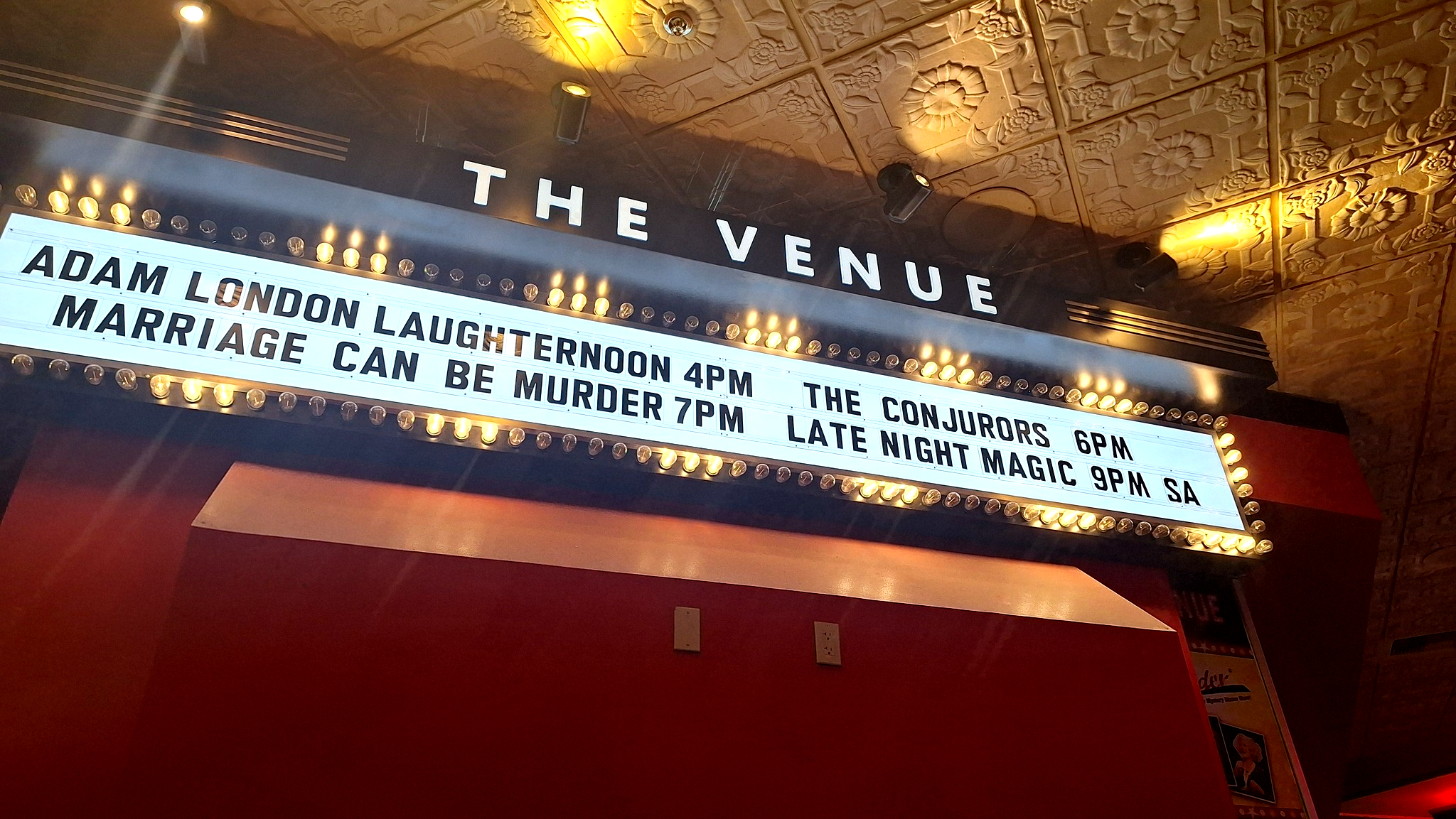 Like a hard-working hooker, MARRIAGE CAN BE MURDER has spread its DNA through hotels around the city. Its most recent home was “The Venue” at Orleans Casino (with a short stint at an obscure events center in between). Rio‘s former DUOMO theater has been rechristened as “The Venue“, with staff and signage from the Orleans included in the move. It’s confusing, isn’t it?