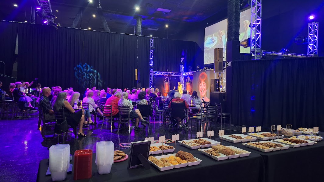Despite living on a retiree’s budget, Debbie generously supported live entertainment, offering funds and energy to events like MONDAYS DARK and Portnoy Gallery’s Wine, Art, and Music (aka ‘WAM’). Debbie’s children joined friends and family to honor this very special person. Singer Kelly Vohnn offered this moving tribute: