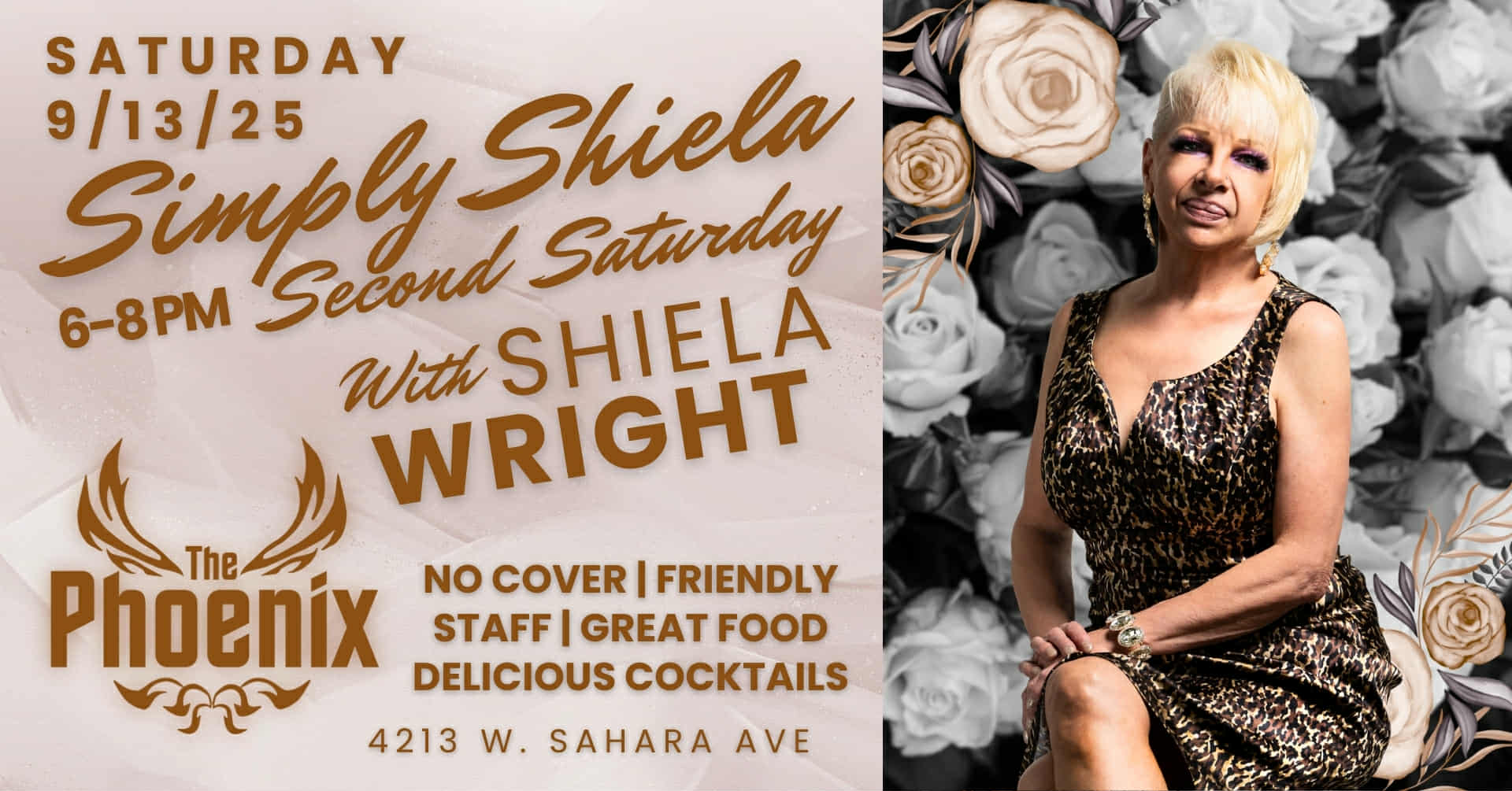 Enjoy terrific music, great food and drinks, and a terrific atmosphere in one place. The Phoenix is located 4213 W. Sahara Avenue. Entrance and parking are free. Shiela takes to the stage beginning at 6 pm.