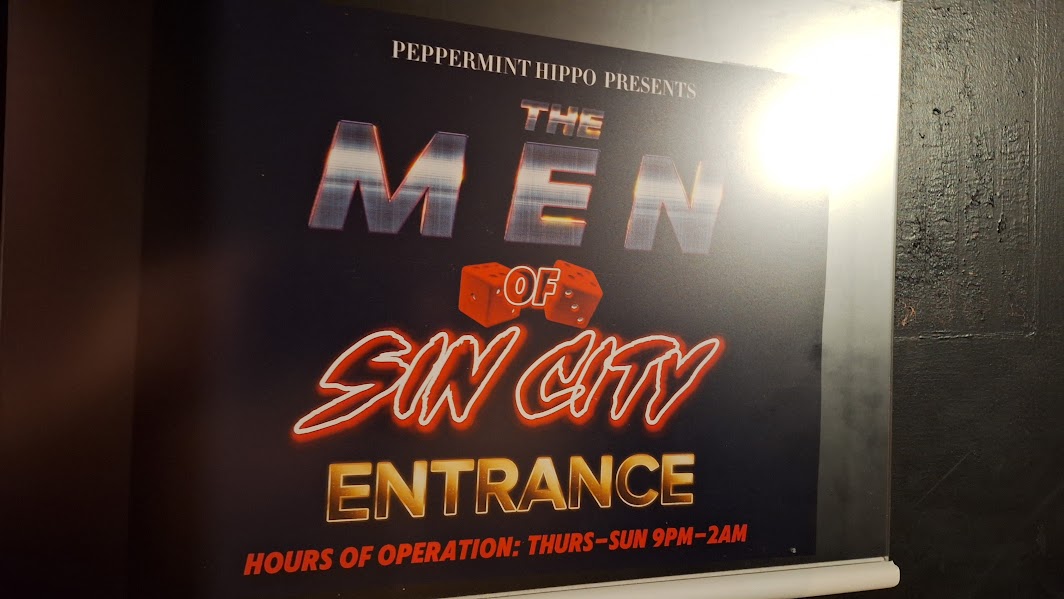 MEN OF SIN CITY is located in Peppermint Hippo‘s newly renovated upper level. While males are permitted to attend, it should be noted that gay audience members may be sorely disappointed. Performers do not engage with other men. Not that they are obligated to…but it’s worth mentioning in an era when many other male revues are inclusive.