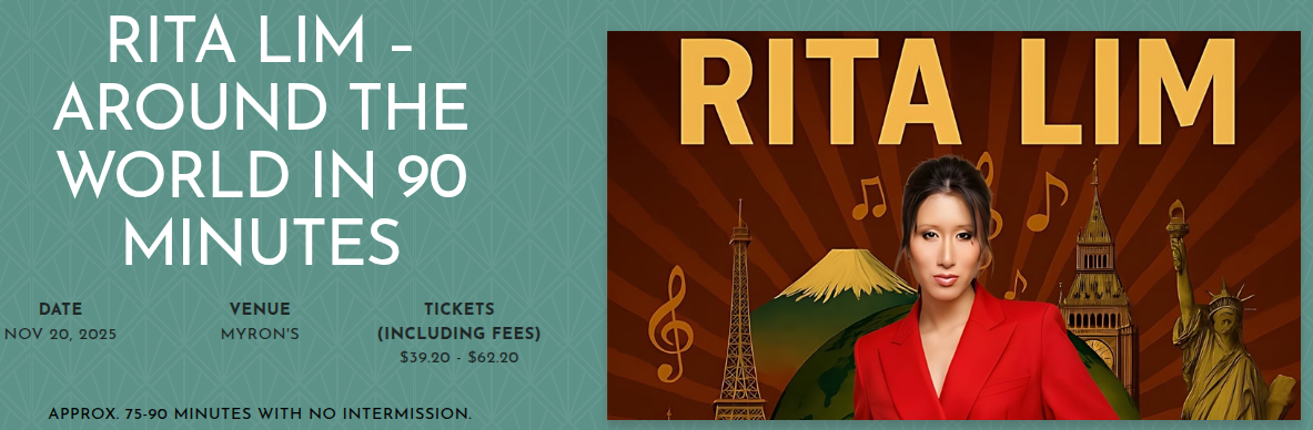 “Take flight with award-winning vocalist Rita Lim in Around the World in 90 Minutes—a globe-spanning concert that celebrates timeless melodies from every corner of the world.”