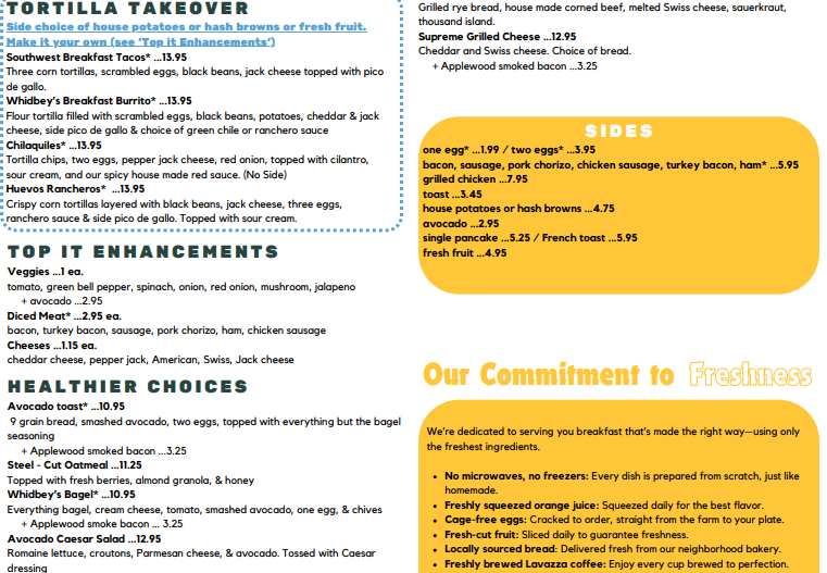 You can view the extensive WHIDBEY’s menu by heading here, or place an online order via this link.
