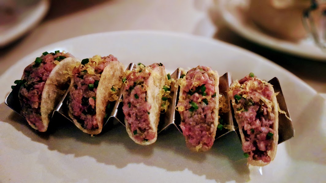 A5 & The Gang (3 oz each, above right) includes NY Strip (NZ), A5 Ribeye (Japan), and Filet Mignon (AU)