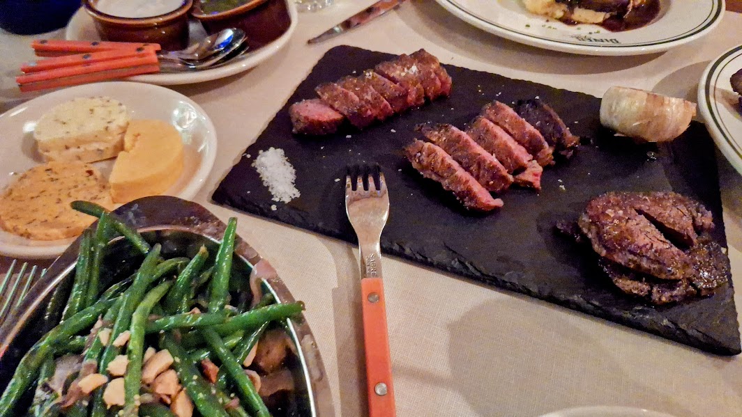 There are numerous other steaks to choose from, including Filet Mignon (8 oz boneless or 16 oz bone-in), a 10 oz Hanger Steak, Steak Frites, and the granddaddy…a 32 oz Tomahawk. Additional entrees include a dry-aged Pork Ribeye, Jidori Chicken, Steelhead Trout, a short rib/brisket Delancy Burger, and Buffalo Chicken Schnitzel.