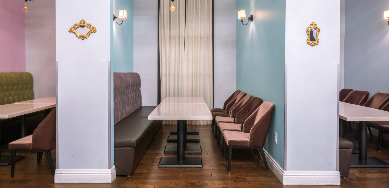 Guests enjoy a private dining experience from Mott 32, complete with a dedicated restroom, ensuring no contact with other patrons in the restaurant. The restaurant serves authentic Asian specialties from Hong Kong, such as braised Wagyu beef cheek curry, dumplings, Pecking duck and more. The bold colors and ample lighting make the private room look and feel elegant, and it is one of the best places to host small groups privately.