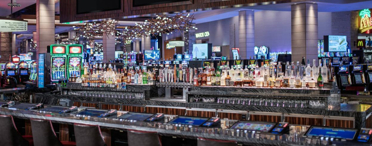 [caption id="attachment_44035" align="aligncenter" width="1024"] at West Casino Bar[/caption] West Casino Bar isn't fancy, but it's enormous and staffed by professionals. Each seat has an embedded slot machine in case you want to gamble instead of paying for your drinks.