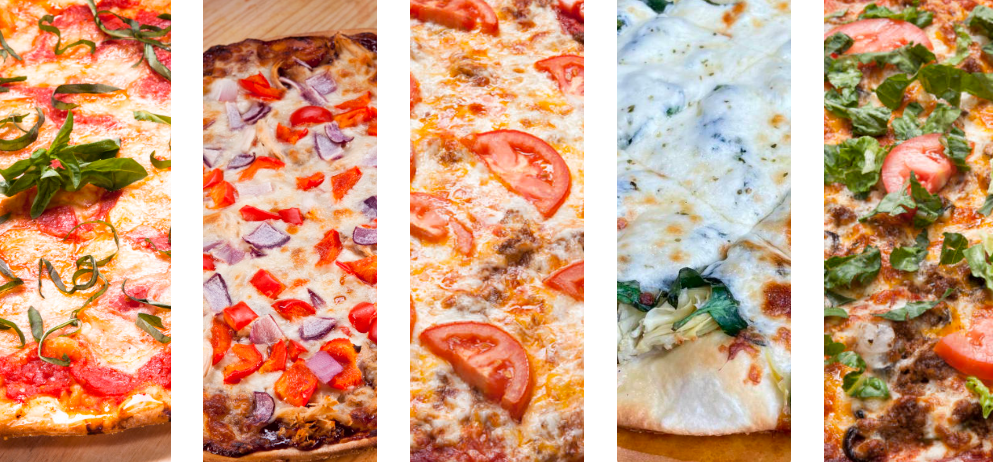 The list of toppings is pretty phenomenal. Check this out:Homemade Sausage • Pepperoni • Ground Beef • Chicken • Bacon • Meatballs • Canadian Bacon • Roast Beef • Mushrooms • Onions • Fresh Green Peppers • Black Olives • Green Olives • Spinach • Artichoke Hearts • Fresh Garlic • Pineapple • Fresh Tomatoes • Hot Giardiniera • Jalapeños • Anchovies • Ricotta Cheese • Fresh Red Peppers • Red Onions