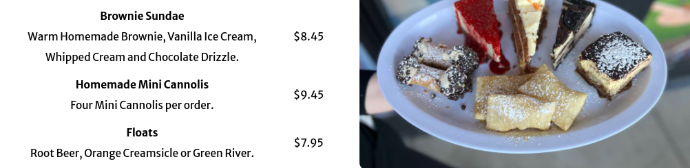 As mentioned, soups are prepared in-house. Selections are Minestrone, Pasta e Fagioli, and Chicken Noodle. The list of salads includes an Antipasta, House, Caesar, Mediterranean, Caprese, and Southwest BBQ Chicken Salad.