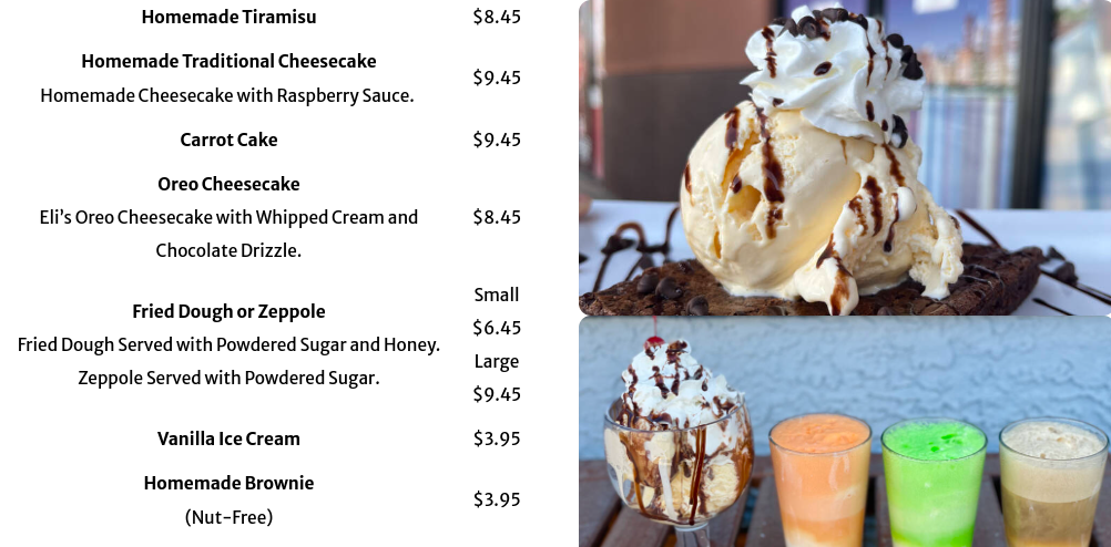 If you've saved room for something sweet, AMORE's dessert menu should quiet the yearning. You might want to pop in just to enjoy a sundae or brownie. We'll let your eyes take over for this section.