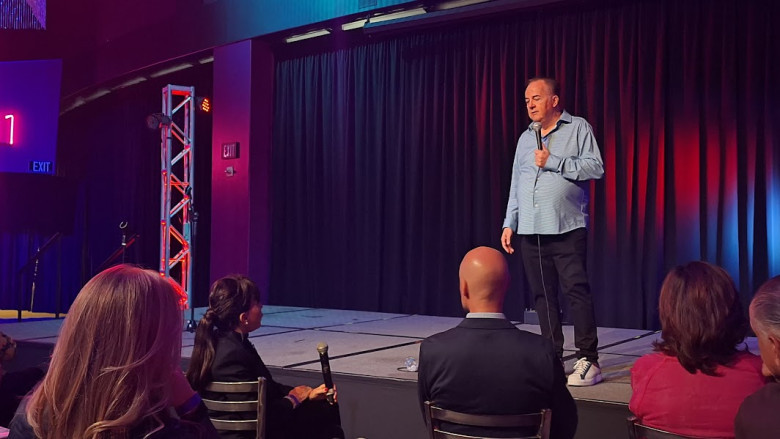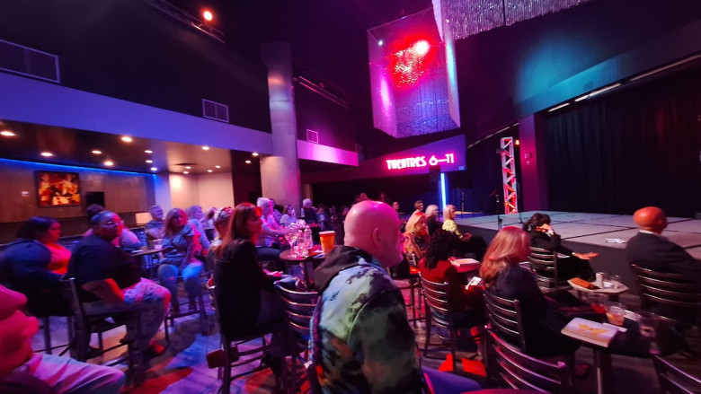 After a stirring encounter with the dead, we "crossed over" from NOTORIETY's "Chandelier Room" to the "Robin Leach Theater". There, we grabbed the last few minutes of VINNIE FAVORITO: UNFILTERED. The insult comic, who's somehow as adorable as he is abrasive, is always a great time.