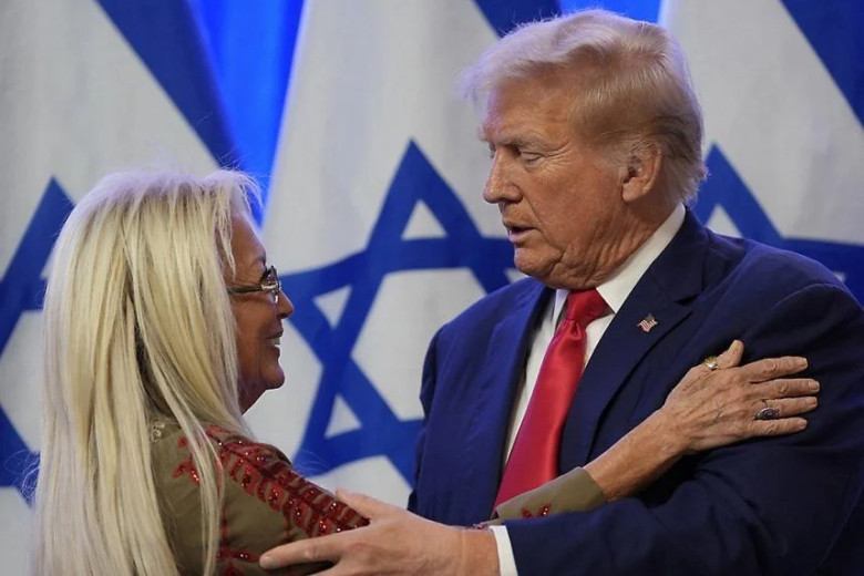 Review-Journal's Miriam Adelson gets cozy with DJT (Photo by Associated Press via Casino.Org)