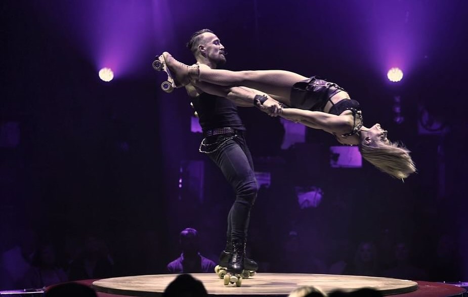 BOR Productions was founded by Valentina's parents Kim and Steve Bor. Her father, who serves as Artistic Director for the company, came from a traditional family circus background. He suggested that the couple learn acrobatic rollerskating. Excited by a new challenge, the couple headed to Budapest in 2014 to train with Tibi Komives at the Hungarian State Circus School. "We skated six days a week with Komives, learning foundational skills necessary for the highly technical act." Matt told me. "Eight weeks of intensive training that would ultimately provide the base of our future duo act." And what a success it was! [embed]https://youtu.be/d7Qev_rwL6k?si=faV-BCpxOomXtqXK[/embed] The "Matt and Valentina Rollerskating Duo" was an instant hit. Their first freestyle gig was in 2015 for a private event in Dubai, followed by the full act in Paris, Munich, Zurich, and Spain. The act became even more polished and intense with time, and the couple was offered contracts in several prestigious productions. They even competed on shows like Germany's It's Showtime and Britain's Got Talent. The couple was part of the cast for Schubeck's TEATRO in Germany when Spiegelworld's Ross Mollison of ABSINTHE sat in the audience. Later that evening, he approached the couple and uttered two fateful words: Las Vegas!