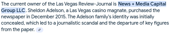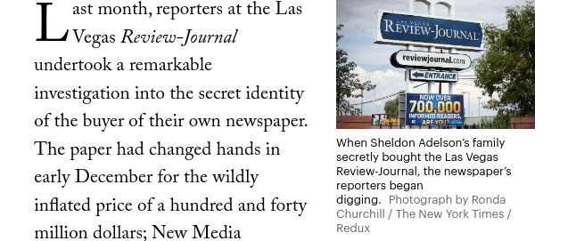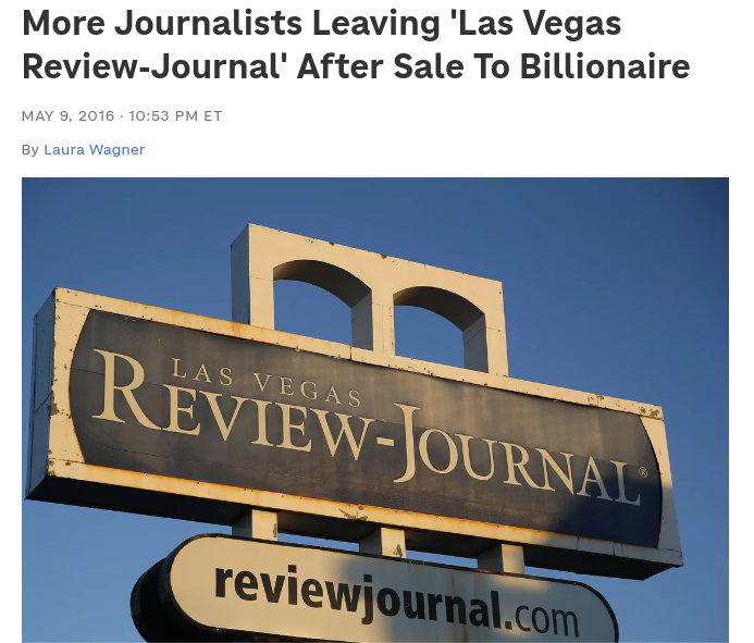 “We deal with enough credibility issues, in terms of people’s general perception of media. It’s not going to be a tenable situation when someone with that much power and influence is sitting in the shadows behind your newspaper.” - James Dehaven, former Review-Journal reporter, via The New Yorker 1/8/16