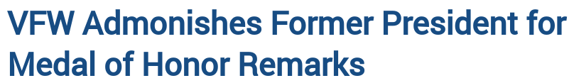 "When a candidate to serve as our military’s commander-in-chief so brazenly dismisses the valor and reverence symbolized by the Medal of Honor and those who have earned it, I must question whether they would discharge their responsibilities to our men and women in uniform with the seriousness and discernment necessary for such a powerful position." - Veterans of Foreign Wars 8/16/24